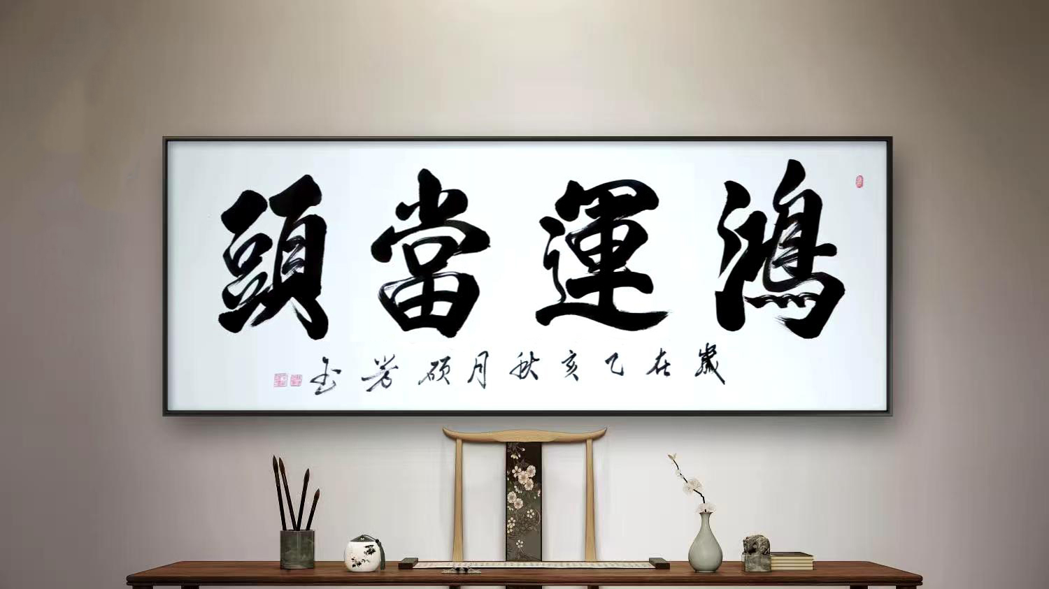 近年来,他的艺术成就得到了业界与市场的双重认可:多次受邀参加“全国书法篆刻展”“中国榜书艺术大展”等顶级赛事,其榜书作品屡屡斩获金奖,成为书展中最受关注的焦点之一;《人民日报》海外版、《书法报》等权威媒体多次对他进行专题报道,称其“以笔墨传承文化,以榜书彰显国魂”;更有多幅作品被中国国家博物馆、中国美术馆及多个驻外大使馆收藏,其中《厚德载物》被作为“国礼”赠予国际友人,让中国书法的魅力走向世界。而在收藏市场上,他的作品也因“艺术价值高、升值潜力大”成为藏家争抢的对象,当前4000-6000元/平方尺的润格,既是对其艺术水平的肯定,更是对他数十年艺术坚守的回馈。