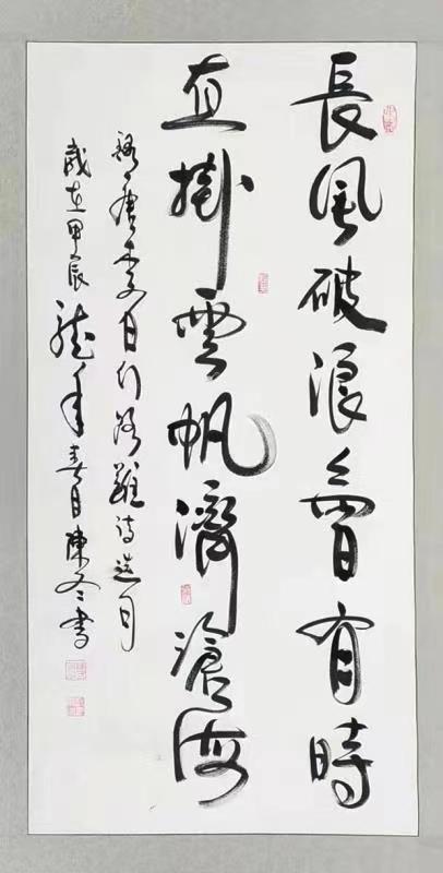 陈冬,北京轩宝堂堂主,退伍军人,1961 年出生,祖籍江苏东海县人,居住南京,从小酷爱书画,世代书香门第。毕业于解放军艺术学院,军旅艺术家。中国书法家协会会员,中国书画家协会会员,国家一级书法师,中国行草第一人,中国百强书画家,中华国礼艺术家特邀顾问,中华名人协会理事,中国书画研究院副院长,江苏省书画家协会理事,南京市书法家协会会员,南京建邺区书法家协会会员,南京轩书画院院长。2024年第三十三届法国巴黎奥林匹克运动会全国书画作品展多幅作品展出,其中沁园春雪荣获金奖。“金龙贺岁·翰墨迎春”全国诗联书画大赛中书法“长风破浪会有时,直挂云帆济沧海”荣获金奖。2024年被CCTV艺术名家栏目组特聘为名誉教授。师承启功,又曾拜学于欧阳中石,李铎等老师。主攻行草,山水,牡丹,花鸟鱼虫等风景画。北漂 20 多年,经过名师赐教, 勤学苦练,字成一体,书画同源,自强不息,梦归书画艺术之巅峰。2003 年至 2005 年在北京清华大学书画高研班进修,清华大学教授言恭达老师言传身教,传承书画技法,弘扬书画艺术经典。作品多次参加全国书画大赛获奖。被授予《中国现代书画名家》,《中国行草名家》,《当代优秀书画家》,《德艺双馨艺术家》,《国际艺术名家》,参加全国退伍军人书画大赛荣获金奖勋章等称号。《香港卫视》现场题词,《兰亭序》被北京故宫博物院收藏。作品入编中国现代书画名家人才库,书画作品多次参加北京,天津, 上海,厦门等国际会展中心展览。兰亭序被雅昌在北京180万拍出,一带一路60万拍出,有雅昌拍卖记录收藏证书。多幅书画作品在各大拍卖公司拍出高价;作品深受国内外各界人士的喜爱和好评,具有一定的收藏价值。2017年作品润格:书法类150000/平方尺,绘画类100000/平方尺。