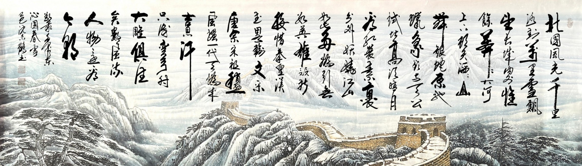 2024年书画结合作品《沁园春雪》在英国苏富比拍卖公司以3216.7万元落槌成交。