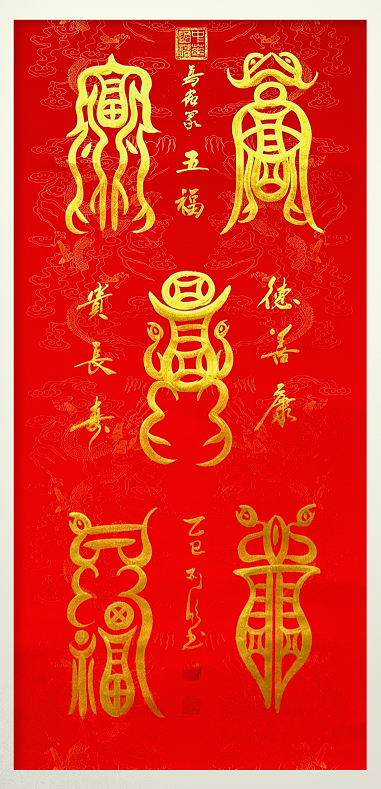2025年《龙行华夏》(鸟虫篆)参加2025敦煌文博会国际书画精品展荣获金奖,拍卖372万。