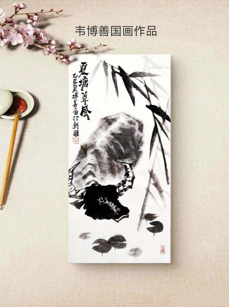 韦博善 ,1972年生于安徽临泉,安徽阜阳师范大学美术系毕业,新疆师范大学美术系本科毕业。曾受中央美院教授刘庆和指导,2007年北京画院研修毕业,导师书画大家石齐先生,新疆现代职业学院任教。北京石齐画院特聘书画家,中国书法家协会,书法考级注册教师,中国楹联协会会员,中国美协家协会 分 会,安徽省美术家协会会员,安徽省硬笔书法家会员,临泉硬笔书法家副主席,临泉县美术家协会理事,临泉县书法家协会理事,中国书画名家协会理事。