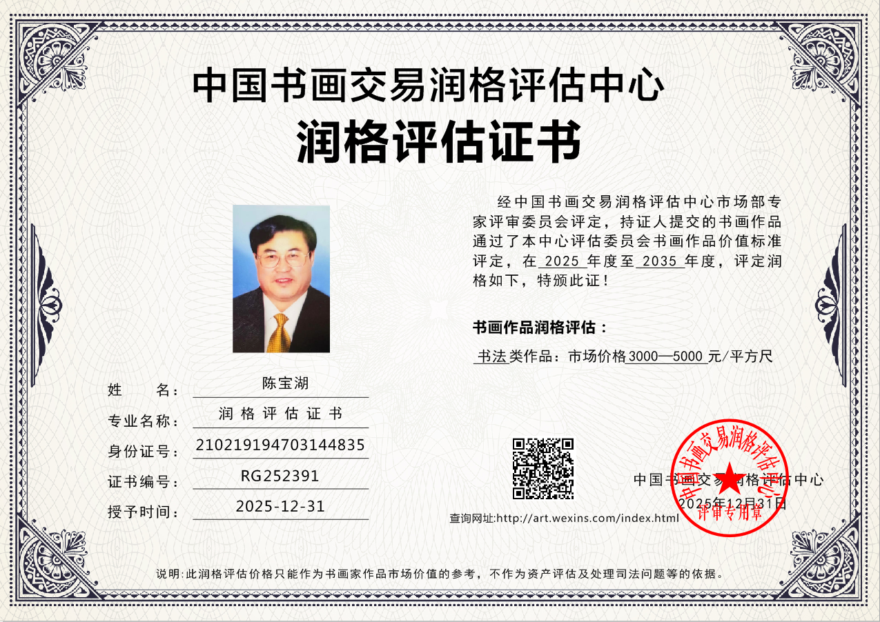 陈宝湖,辽宁省大连瓦房店市炮台镇人,中共党员,毕业于大连管理干部学院,酷爱中国传统文化、尤其喜爱中国书法艺术和中国古典文学。退休后从63岁开始学习书法艺术,他从晋唐行楷入手学习书法艺术,力求融入个人风格,小楷书法技艺不断提高,刻苦学习毛体书法艺术并卓有成就,其书法作品在全国各級书法大赛中屡屡获奖,部分书法作品被社会各界人士收藏。現为中国毛体书法家协会会员、中国楹联学会会员、辽宁省毛体书法家研究会理事、辽宁省毛体书法家研究会大连分会副会长、瓦房店市楹联家协会副主席、瓦房店市楹联书画院副院长。建国70周年画展获金奖,中国楹联协会书画展特等奖,辽宁省毛体书法庆祝共产党100周年书画展一等奖。